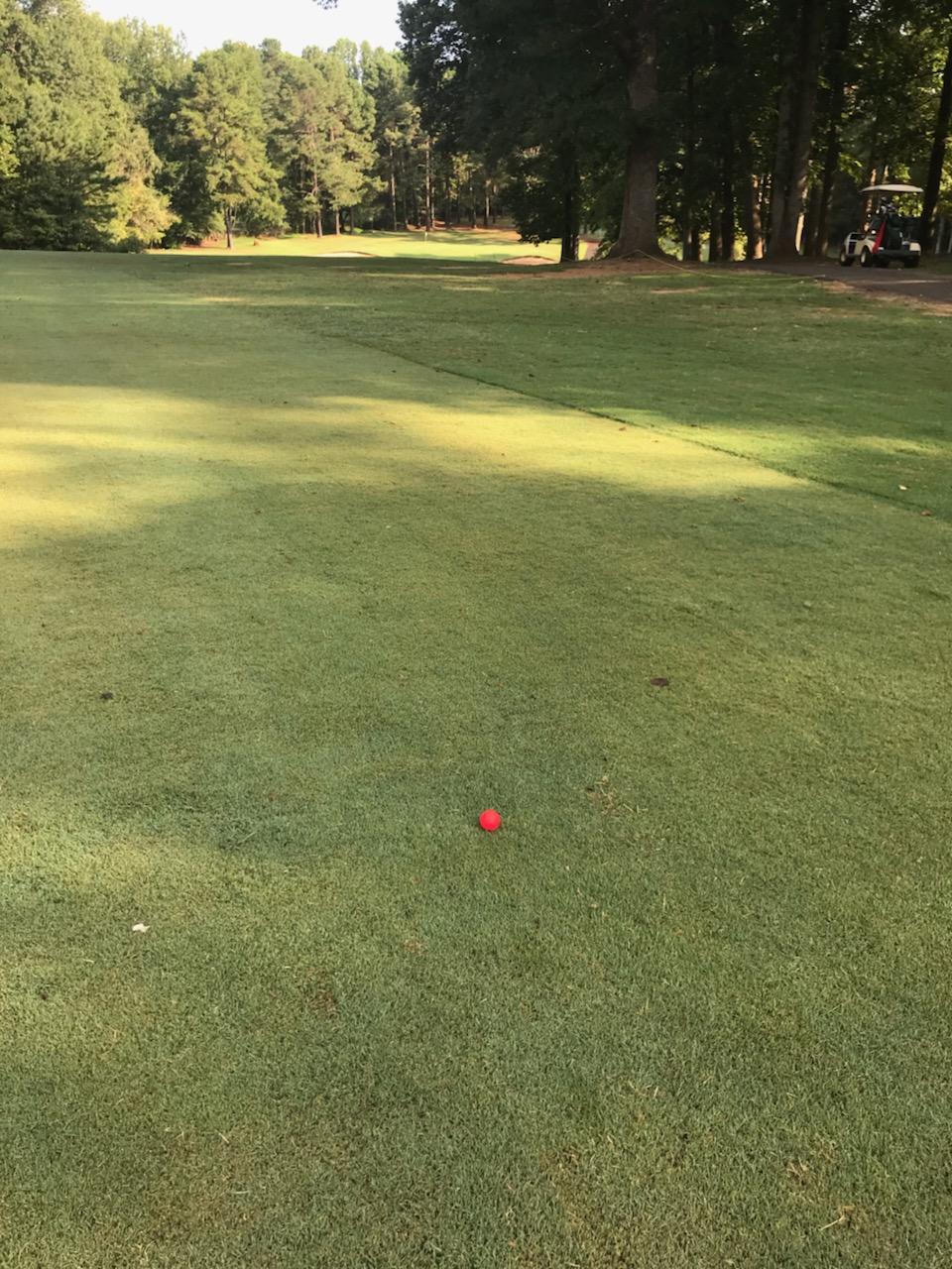 Dan, from North Carolina, sent a picture while golfing with someone who used a RED golf ball. Colorblindguys would have trouble locating the ball when in the fairway.